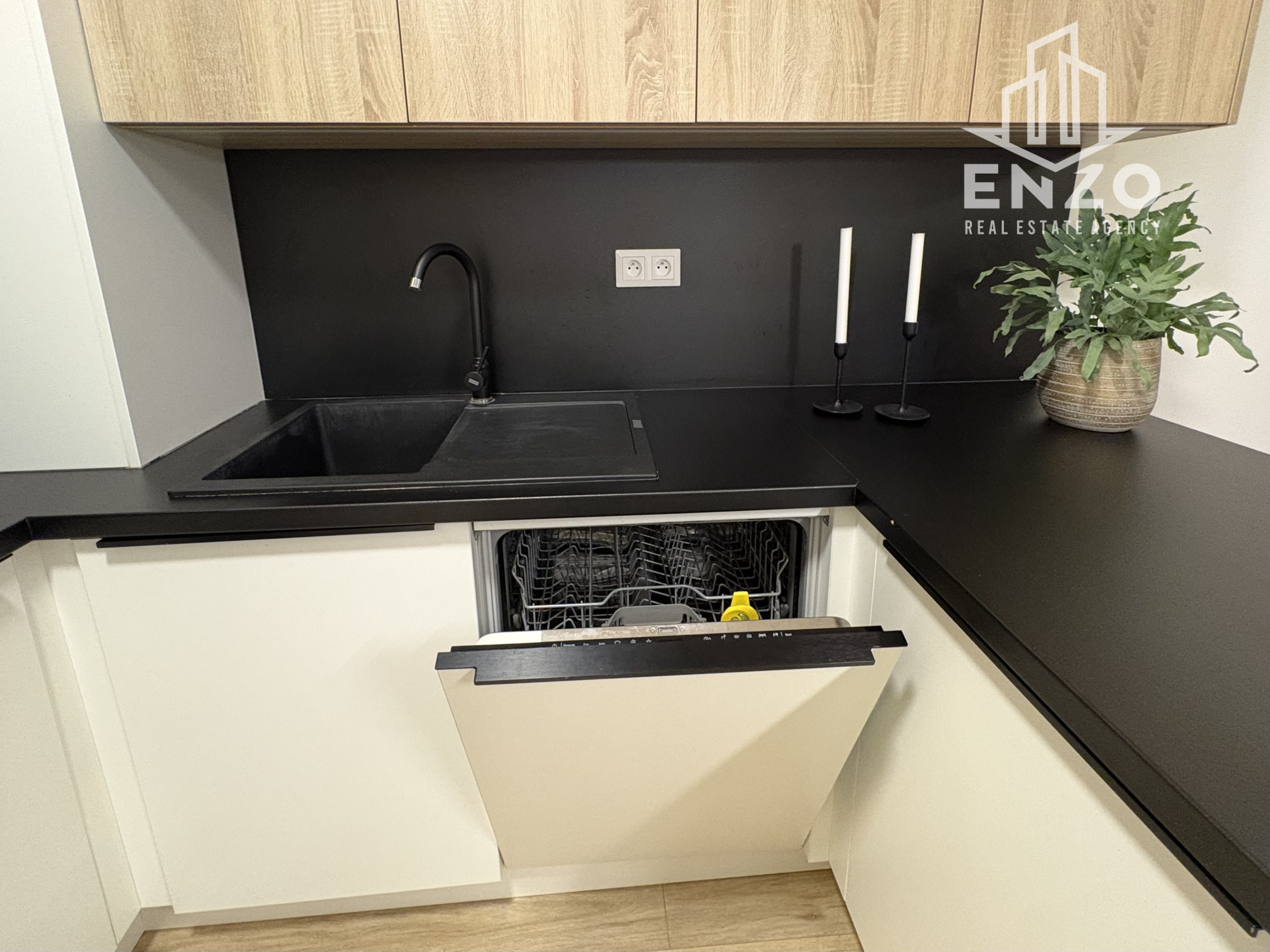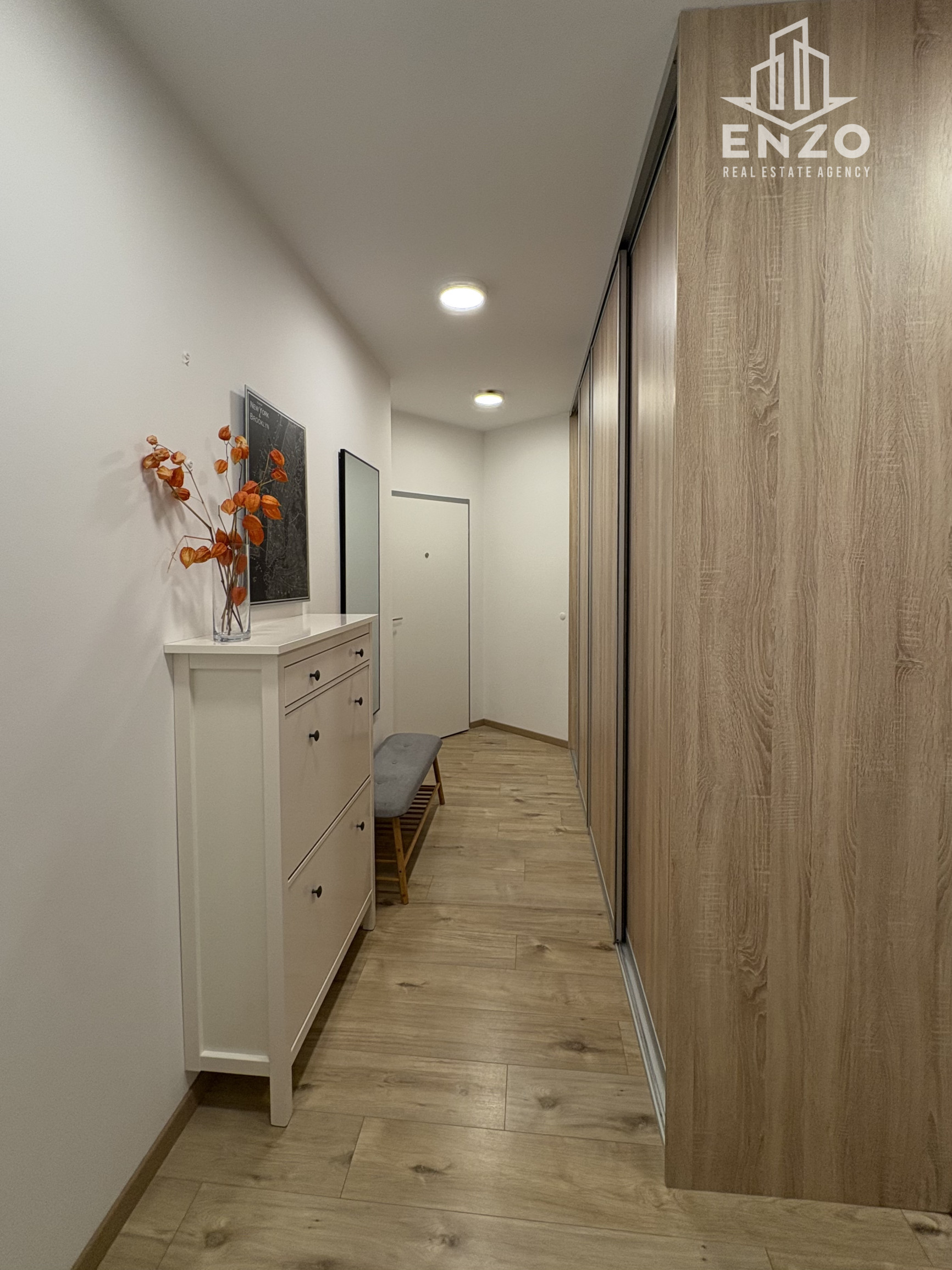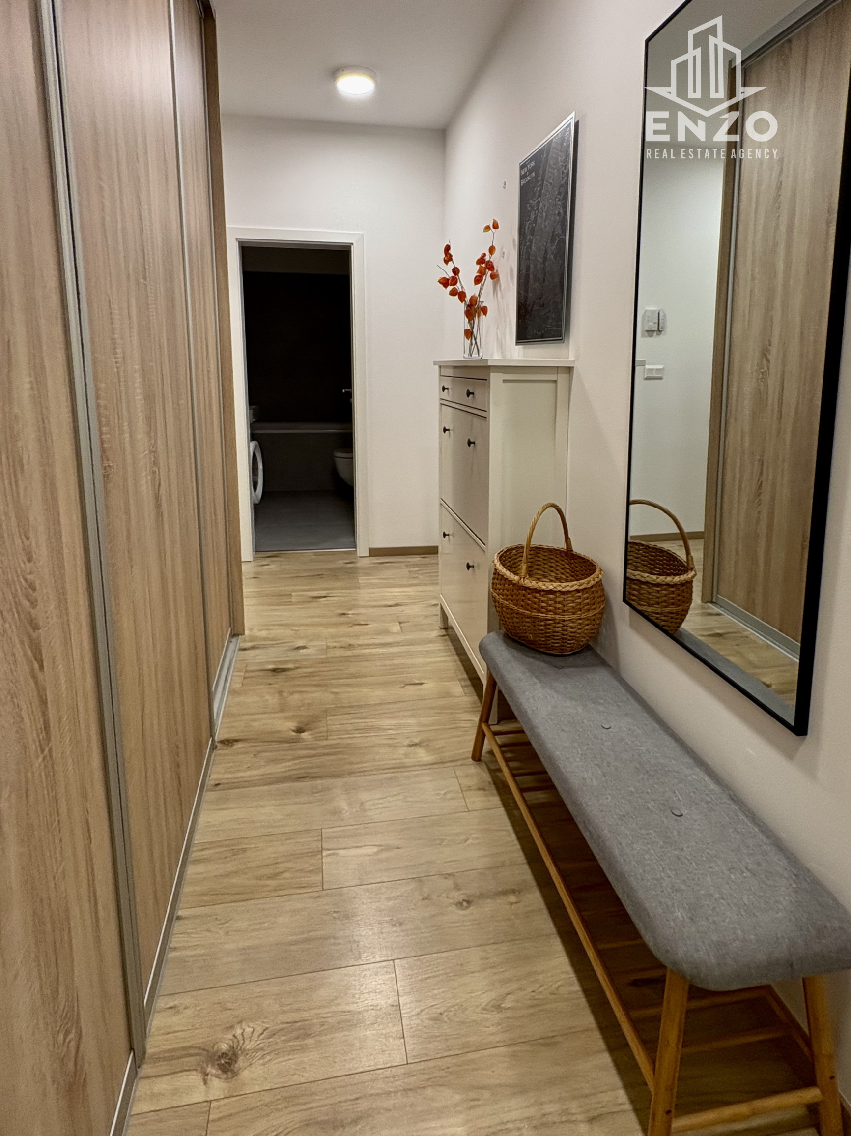 ZARIADENIE: Byt sa prenajíma kompletne zariadený a vybavený. Predsieň s rolldorom, botníkom a lavicou, kuchynská linka so vstavanými spotrebičmi ( umývačka riadu, indukčná varná doska, digestor, elektrická rúra, chladnička s mrazničkou), spálňa s rolldorovou skriňou, dvoma pracovnými stolmi, manželská posteľ, obývačka s veľkou rohovou sedačkou, jedálenským stolom so stoličkami, kúpeľňa s vaňou, práčkou, umývadlom a WC. Na oknách sú exteriérové zatemňovacie žalúzie. Byt je vybavený klimatizáciou.