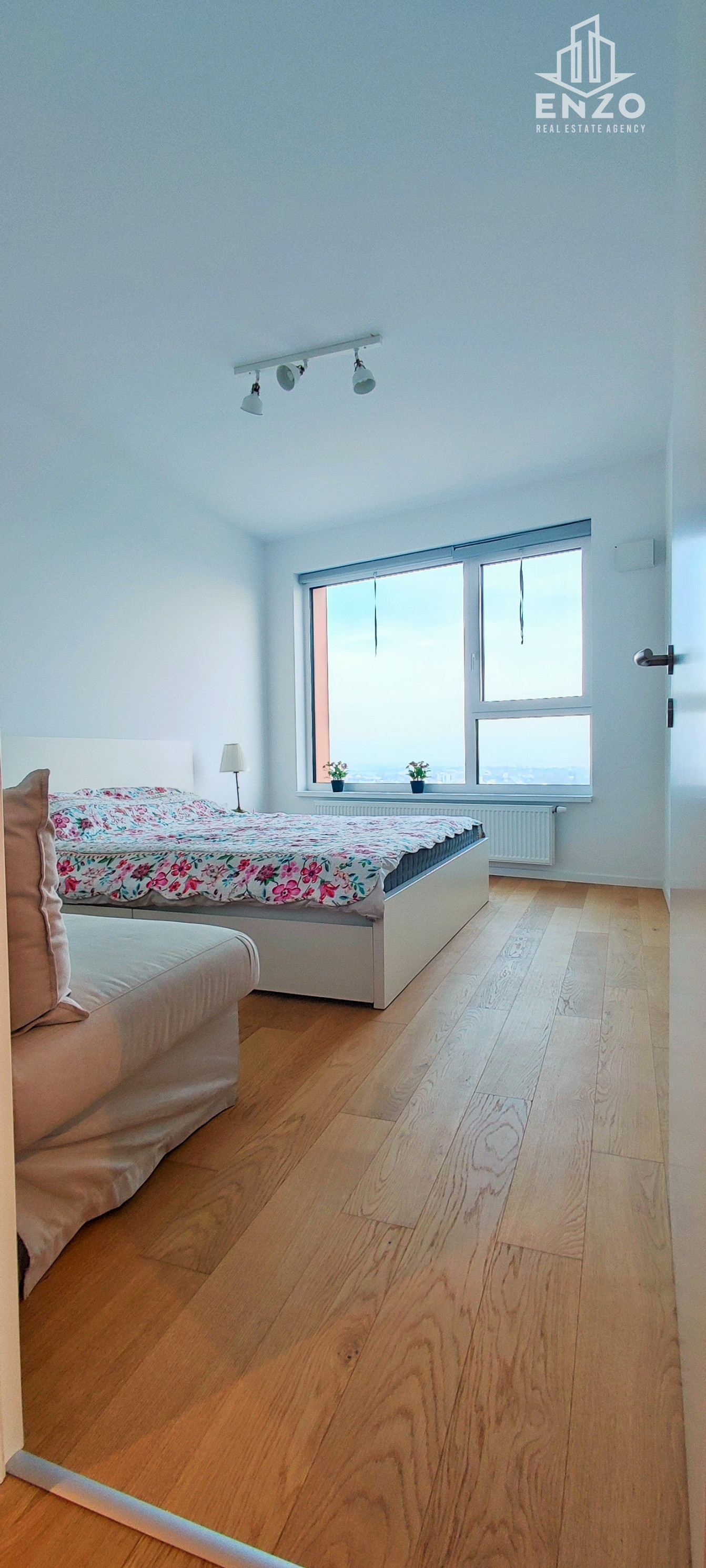 BYT: Výmera bytu je 88 m2, z čoho loggia tvorí 10 m2. Byt sa nachádza na 27. poschodí, z celkových 35 poschodí, s výťahom.