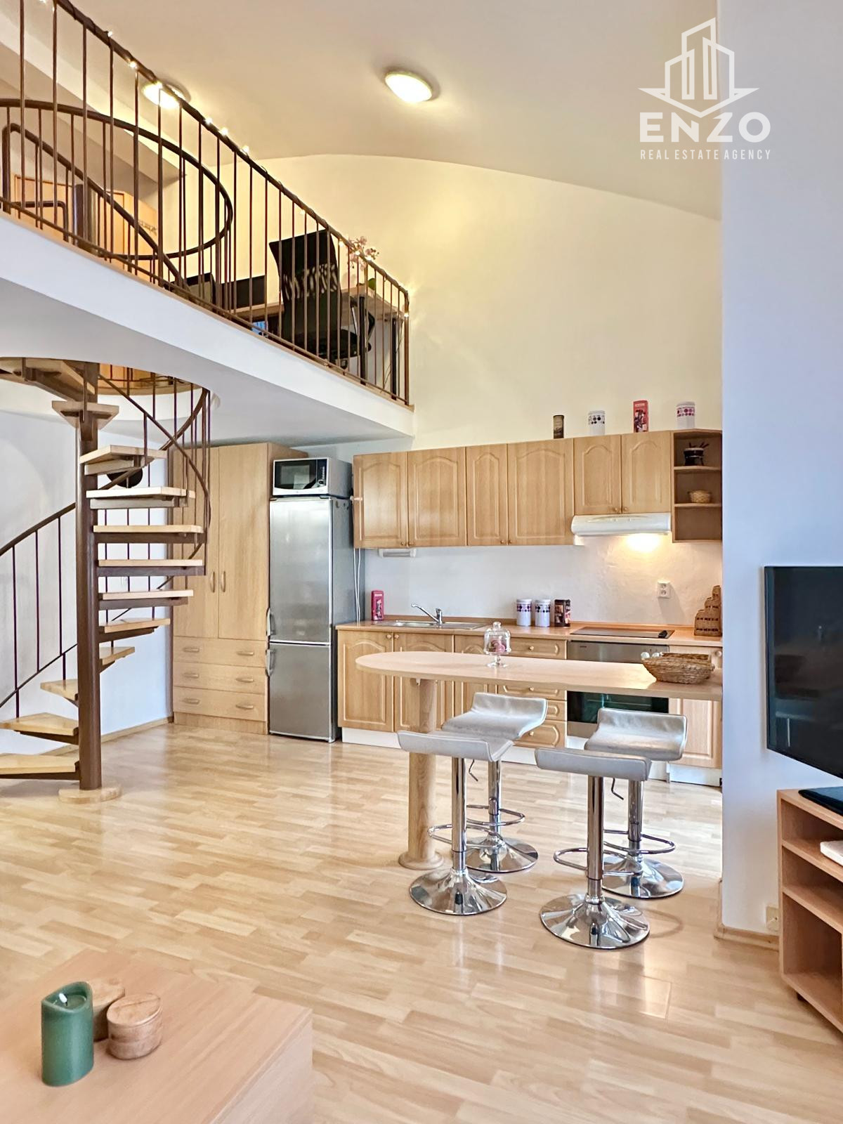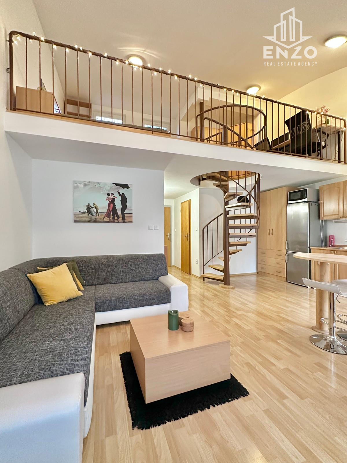 ENZO REAL ponúka, v exkluzívnom zastúpení, na prenájom moderný, priestranný a kompletne zariadený mezonetový byt loftového typu na Kresánkovej ulici, na Dlhých Dieloch.