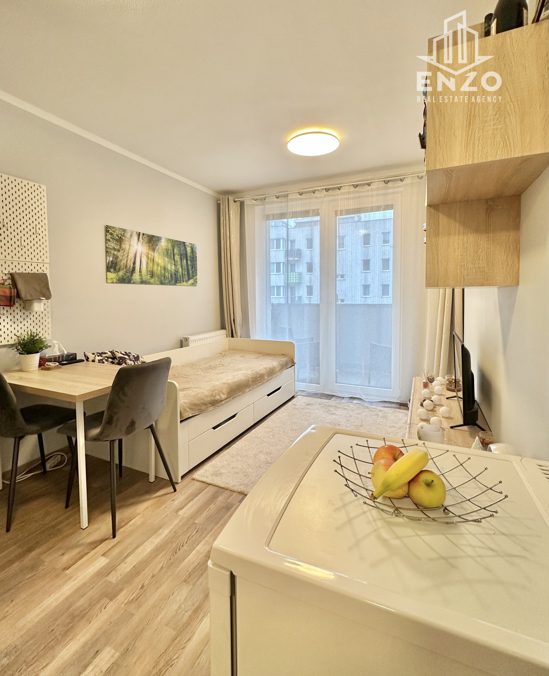 Byt ponúka komfortné bývanie v modernom a vkusnom prevedení. Celková plocha bytu je 26,02 m² (interiér 20.36 m², exteriér 3,40 m² a pivničná kobka 2.26 m²). Nachádza sa na 2. poschodí z 5. Vďaka svojej západnej orientácii a francúzskemu oknu poskytuje množstvo príjemného svetla počas celého dňa.
