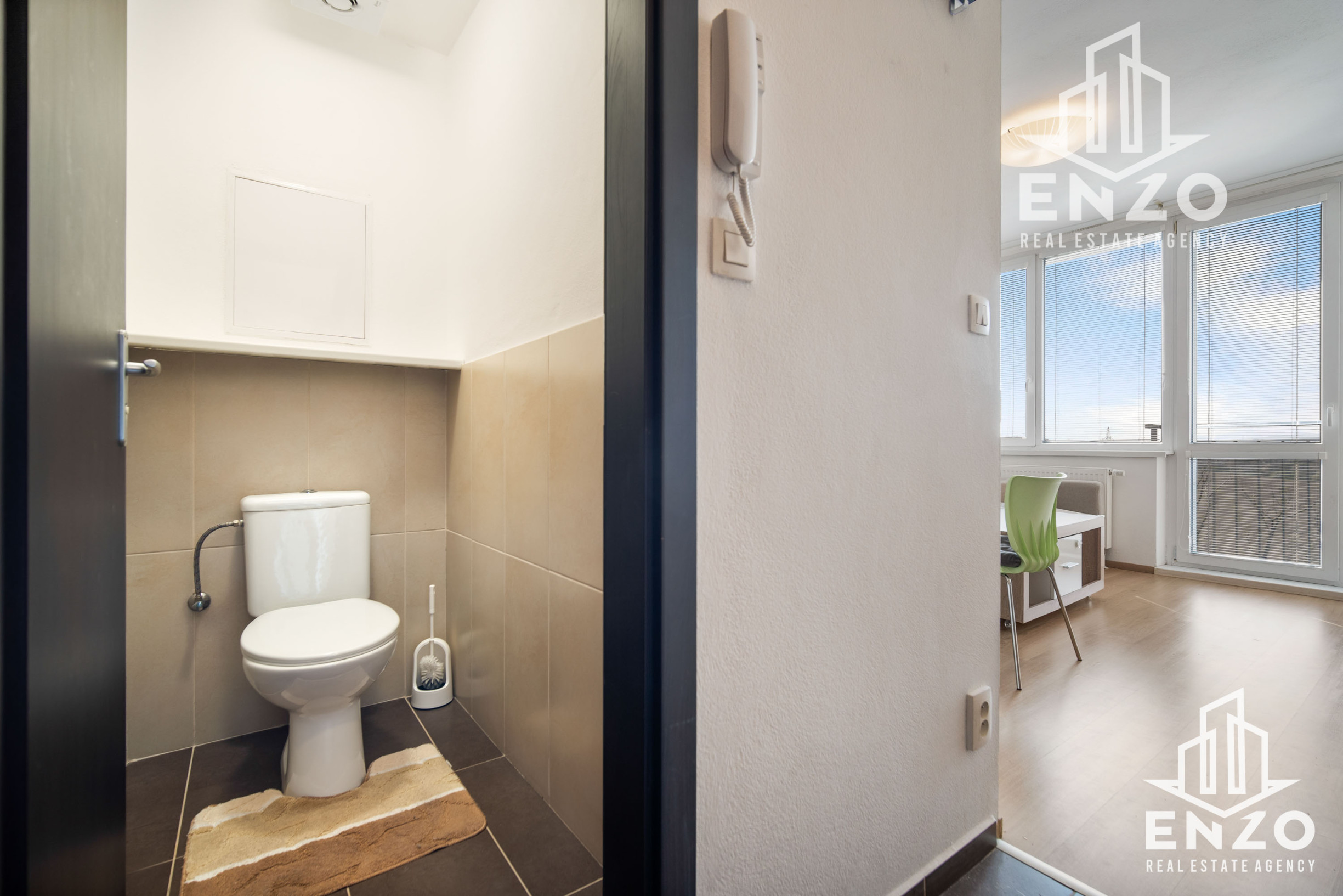 Enzo Real Estate, v exkluzívnom zastúpení, ponúka na predaj presvetlený 2-izbový byt v novostavbe z roku 2012 na Závodnej ulici v Bratislave. Byt sa nachádza na vyššom podlaží, vďaka čomu ponúka budúcemu majiteľovi absolútne súkromie a panoramatické západné výhľady na celú Bratislavu, ktoré si vychutnáte cez štýlový francúzsky balkón.